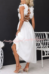 - Lace-up style tie at back