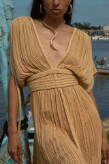- A Grecian dress transforms from comfortable to glamorous with a simple braided tie. Classically chic, it's high-waisted, wrapped and tied at the shoulders for our one-of-a-kind resort style.