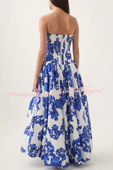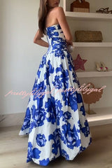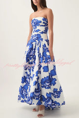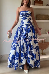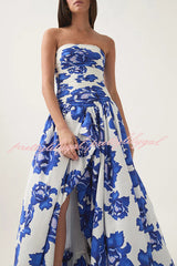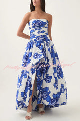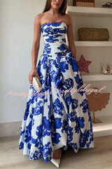 Perfect Moment Floral Off Shoulder Ruched Bodice Drape Bubble Hem Maxi Dress