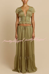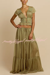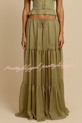 Sabrina Chiffon Mid Rise Adjustable Waist Tiered Silhouette Maxi Skirt