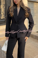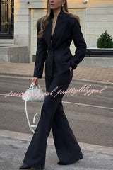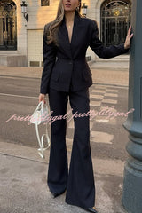 Solid Color Long-sleeved Single-button Blazer and Pocket Casual Flared Pants Set