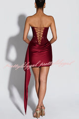 Party Entrance Sequin Corset Ruched Satin Ruffle Hem Strapless Mini Dress