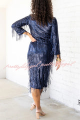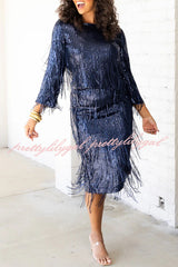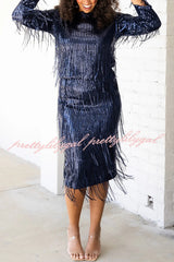 Insight Blueberry Sequin Fringe High Rise Elastic Waistband Midi Skirt