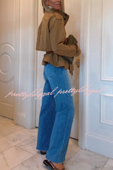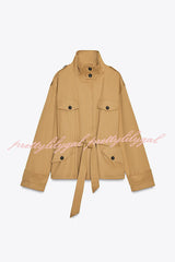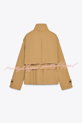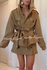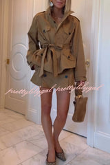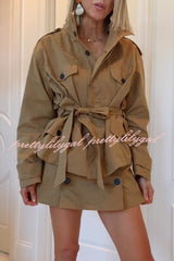 Chic Comfort Epaulettes Contrast Buttons Pocket Belt Cropped Trench Coat