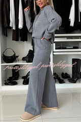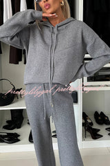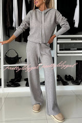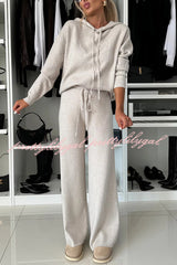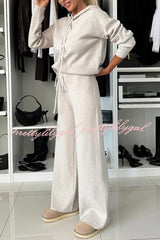 Solid Color Loose Hooded Tie Sweatshirt and Elastic Waist Casual Straight Pants Set