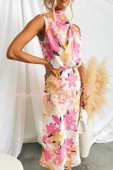 Floral Print Sleeveless Waisted Resort Maxi Dress