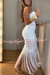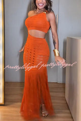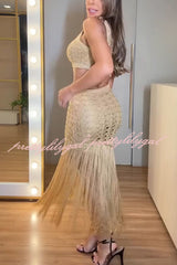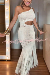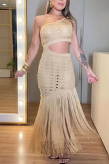 Refresh Style Knit Hollow Out One Shoulder Cutout Waist Tassel Hem Maxi Dress