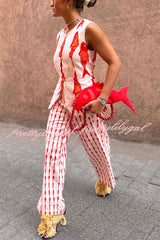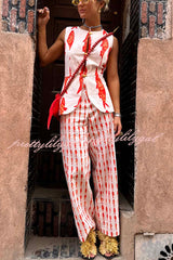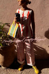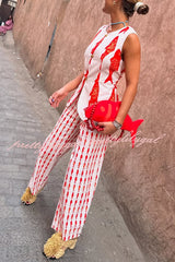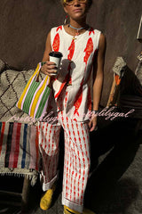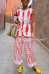 Good Luck Linen Blend Koi Pattern High Rise Elastic Waist Loose Pants