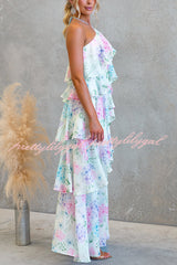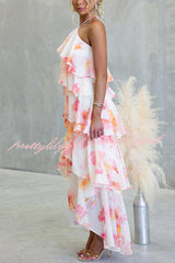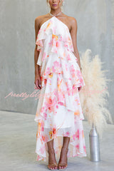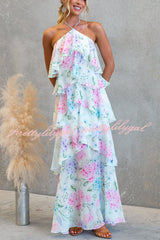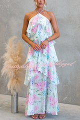 Poetic Eden Chiffon Floral Print Tiered Ruffles Halter A-line Maxi Dress