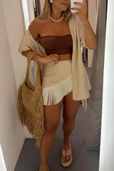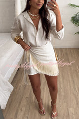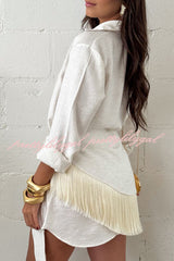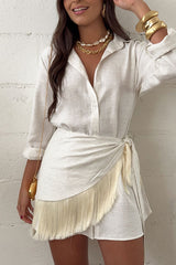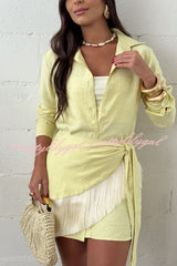 Sorena Linen Blend Button Up Long Sleeve Midi Blouse and Tassel Trim Warp Cover-up Mini Dress Set