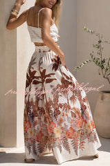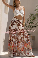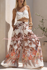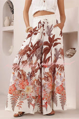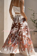 Leaf Print Casual Elastic Waist Pocket Loose Wide-leg Pants