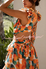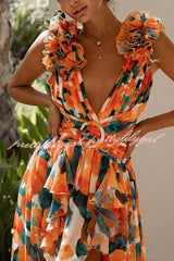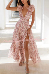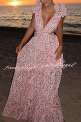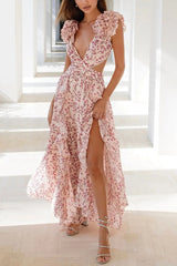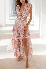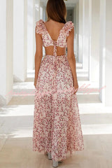 Lost in The Melody Chiffon Printed Flutter Sleeve Cutout Back Lace-up Maxi Dress