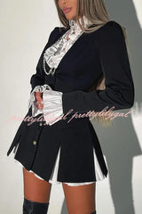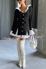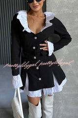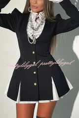 Altair Contrast Ruffled Shirt Patchwork Button Pleated Blazer Mini Dress