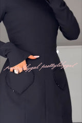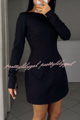 Anna Sparkling Gemstone Trim Heart Pocket Long Sleeve Mini Dress