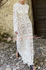 Easy Resort Knit Crochet Cutout Long Sleeve Reversible Vacation Maxi Dress
