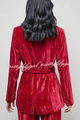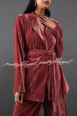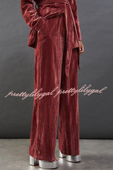 Solid Color Velvet Long-sleeved Waist Tie Top and Elastic Waist Casual Pocket Straight-leg Pants Set