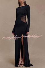 Fashion Long-sleeved Slim Sexy Hollow Slit Maxi Dress