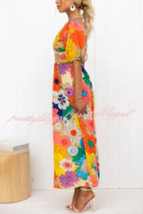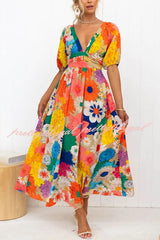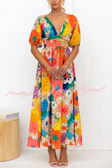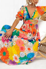 Floral Frenzy Printed Puff Sleeve Back Smocked Maxi Dress
