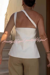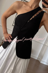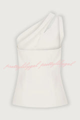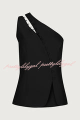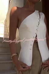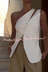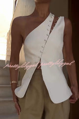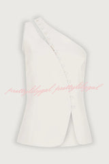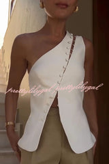 Full of Design Solid Color One Shoulder Asymmetric Slit Button Casual Vest