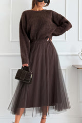 Gisella Tulle High-rise Elastic Waist Layered Flowy Midi Skirt