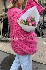 Solid Color Loose Round Neck Long Sleeve Casual Knitted Sweater
