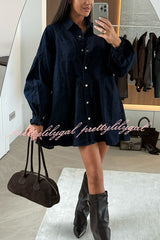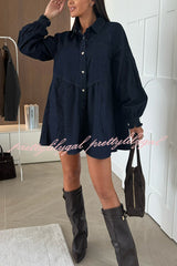 Fashion Heart Button Long Sleeve Casual Pocket Denim Mini Dress