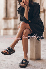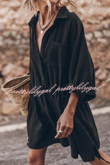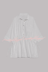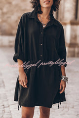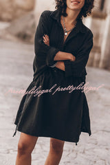 - Oversized cotton shirt dress in black with adjustable bands for versatile looks.Our distinctive clothing will add instant style to your wardrobe.