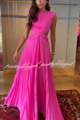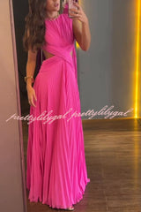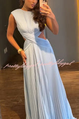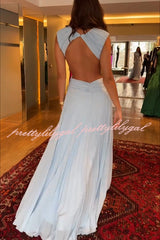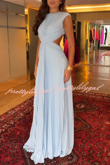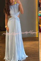Tamia Pleated Chiffon Fabric Crossover Cutout Waist Open Back Maxi Dress