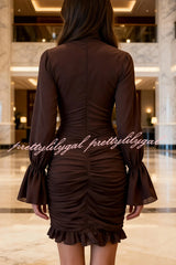 Sexy See-through Tulle High-neck Waist Pleated Ruffle Mini Dress