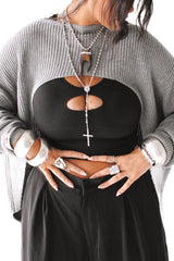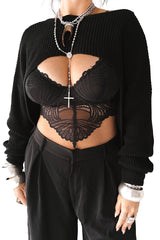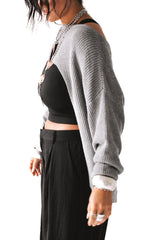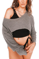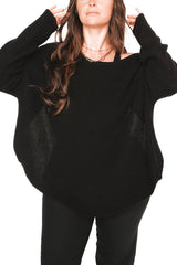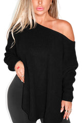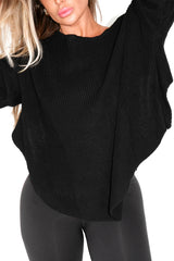 Solid Color Loose Long-sleeved Irregular Casual Knit Top
