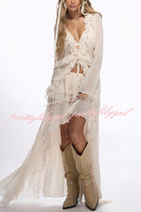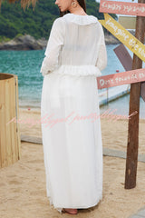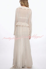 Solid Color Loose Long-sleeved Ruffled Holiday Cover-up Robe