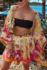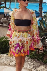 Stunning Beach Unique Baroque Print Beachside Cover-up and Elastic Waist Mini Skirt Set