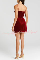 Harley Luxurious Velvet Fabric Jewel-embellished Shoulder Straps Pocket Tulip Mini Dress