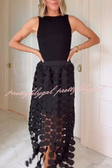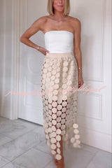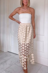 Casie See Through Circle Embroidery Elastic Waist Tassle Hem Maxi Skirt