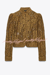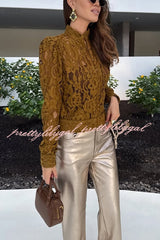 Palace Style Crochet Flower Lace Stand Neck Button Puff Sleeve Jacket