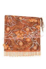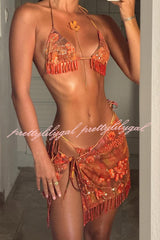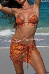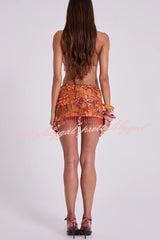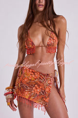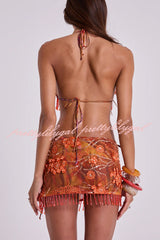 Fashionable Tie-up Floral Embellished Beaded Tassel Mini Skirt