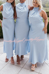 Touch of Allure Satin Drape High Neck Lace Detail Maxi Dress