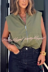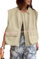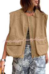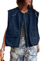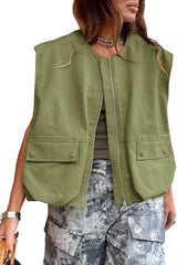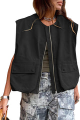 Fashion Zipper Sleeveless Pocket Loose Vest Jacket