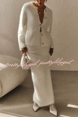 Solid Color Long-sleeved Button-pocket Knitted Jacket and Elegant Long Skirt Set