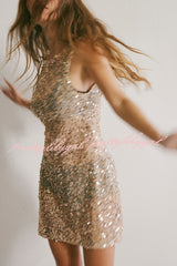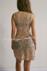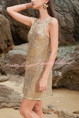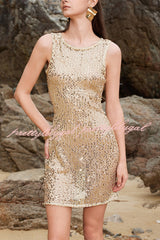 Fashionable Sequined Round Neck Sleeveless Holiday Cover-up Mini Dress