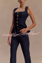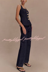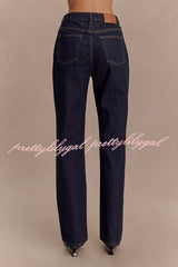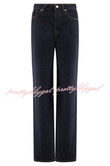 - These jeans feature a timeless straight silhouette for a flattering and versatile fit. Functional buttons and fly at center front ensure easy fit and secure fit. The 5-pocket design adds practicality and provides ample storage space for your essentials. These jeans feature a waistband and belt loops for additional styling options to suit your personal taste.