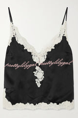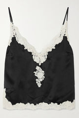 • Designed with "uninhibited femininity" in mind, this camisole radiates light in every piece. Crafted from lustrous silk-satin, this camisole is embellished with delicate guipure lace for a romantic, lingerie-inspired look. Adjustable straps for the perfect fit.