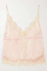 Celebration Look Contrast Color Satin Lace Trim V-Neck Slip Tank