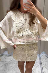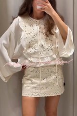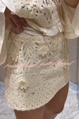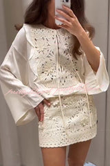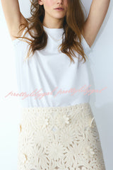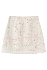 Fashion Floral Hollow Embroidery Slim Mini Skirt