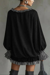 Fashionable Patchwork Ruffled Loose Long-sleeved Casual Mini Dress
