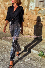 - Bring glitz and glamour to your nightlife with the Diva Sequin Flare Pants!