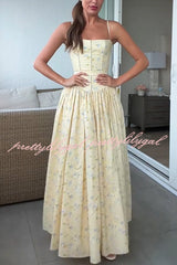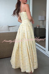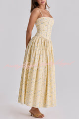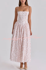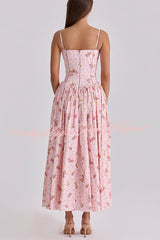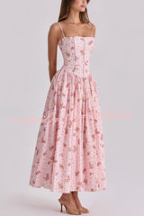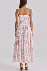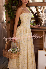 Romantic Countryside Stretch Cotton Blend Floral Print Cutout Trim Slip Midi Dress