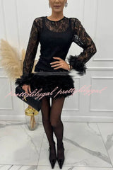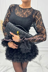 Alyssa Lace Fabric Tulle Layered Petals Trim Long Sleeve Mini Dress