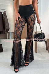 Chic Moment Floral Lace High Rise Elastic Waist Fishtail Hem Stretch Pants