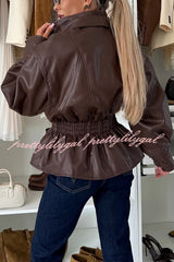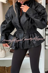 Play It Cool Faux Leather Single Button Elastic Waist Lapel Moto Jacket